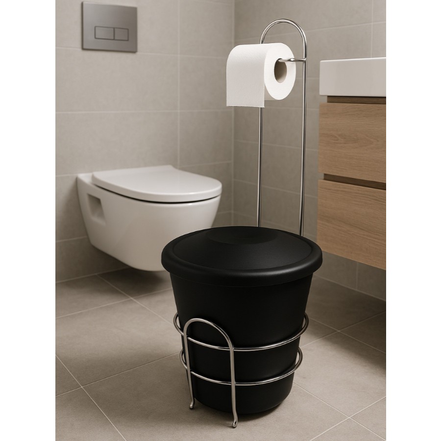 Lixeira de Banheiro com Suporte em Aço Inox – 5,5 Litros Mantenha seu banheiro sempre organizado, higiênico e elegante com esta lixeira de 5,5 litros acompanhada de suporte em aço inoxidável. Desenvolvida para quem busca praticidade aliada ao design moderno, é perfeita para ambientes compactos que exigem funcionalidade sem abrir mão do estilo. Por que escolher esta lixeira? - Higiene e organização garantidas: ideal para evitar acúmulo de lixo no banheiro. - Durabilidade superior: suporte em aço inox resistente, inoxidável e anticorrosivo. - Estabilidade e segurança: o suporte possui pezinho que mantém a lixeira firme e facilita a limpeza do chão. - Compacta e funcional: com 48 cm de altura e 26 cm de largura, se adapta a banheiros pequenos sem ocupar muito espaço. - Acabamento moderno: une praticidade com um visual elegante, valorizando a decoração do ambiente. Características do produto: - Capacidade: 5,5 litros - Lixeira em plástico resistente - Suporte em aço inoxidável, anticorrosão - Medidas: 48 cm (altura) x 26 cm (largura) - Design funcional e sofisticado Informações importantes: - Produto de alta qualidade para uso residencial ou comercial. - Pronta entrega. - Compras confirmadas até 11h são postadas no mesmo dia. Transforme o seu banheiro com uma lixeira que oferece praticidade, durabilidade e design elegante em um único produto.