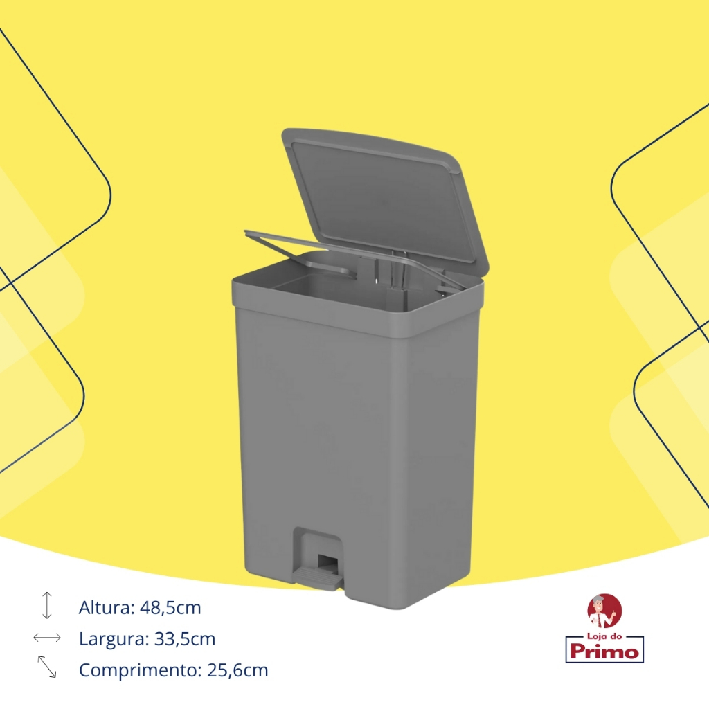 Mantenha seu ambiente limpo e organizado com a Lixeira de Pedal Trium 30L Chumbo Fechado. Feita de polipropileno (PP) durável, esta lixeira oferece uma solução prática e higiênica para o descarte de resíduos. Com uma capacidade de 30 litros, ela é ideal para cozinhas, escritórios e outros ambientes que requerem um recipiente de lixo espaçoso e eficiente. A elegante cor cinza chumbo e o design moderno adicionam um toque de sofisticação ao seu espaço. Características: - Linha: Trium - Material: PP (Polipropileno) - Cor: Cinza Chumbo - Capacidade: 30 litros - Dimensões: Altura: 48,5 cm Largura: 33,5 cm Profundidade: 25,6 cm - Peso: 1,28 kg Benefícios: - Design Moderno: A cor cinza chumbo e o design elegante fazem desta lixeira uma adição estilosa para qualquer ambiente. - Durabilidade: Feita de PP, material resistente que garante longa vida útil ao produto. - Capacidade Generosa: Com 30 litros de capacidade, é ideal para áreas que produzem uma quantidade considerável de resíduos. - Higiênica e Prática: O pedal facilita a abertura da tampa sem o uso das mãos, promovendo a higiene e a conveniência. - Fácil de Limpar: O material liso permite uma limpeza fácil e rápida, garantindo que a lixeira permaneça higienizada. Cuidados: Limpeza: Recomenda-se limpar regularmente com água morna e sabão para manter a lixeira livre de odores e em bom estado. Uso Sugerido: - Cozinha: Ideal para armazenar resíduos de cozinha de forma higiênica e prática. - Escritório: Perfeita para áreas de trabalho, ajudando a manter o ambiente limpo e organizado. - Banheiro: Pode ser usada em banheiros para descarte de resíduos com facilidade e discrição. Com a Lixeira de Pedal Trium 30L Chumbo Fechado, você combina praticidade, higiene e estilo, mantendo seu espaço sempre limpo e organizado.