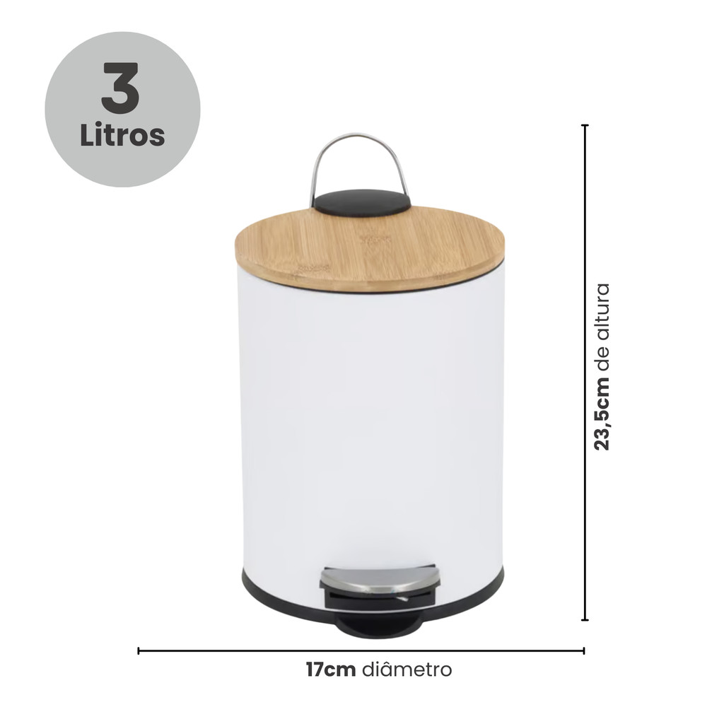 Apresentamos a nossa Lixeira com Tampa de Bambu, uma adição funcional e elegante para tornar o seu espaço mais prático e moderno. Desenvolvida com uma tampa de bambu, esta lixeira combina perfeitamente com ambientes que variam do tradicional ao mais sofisticado. Com uma capacidade de 3 litros e um prático pedal para facilitar o descarte do lixo no dia a dia, esta lixeira é a escolha ideal para manter o seu espaço organizado e limpo. Características Principais: Materiais de alta qualidade: Fabricada em ferro resistente, plástico polipropileno (PP) durável e uma tampa de bambu natural, esta lixeira é uma combinação de elegância e durabilidade. Capacidade de 3 Litros: Com espaço suficiente para acomodar resíduos do cotidiano, a capacidade de 3 litros é ideal para ambientes de uso frequente. Praticidade com pedal: O pedal integrado torna o descarte do lixo mais higiênico e conveniente, permitindo que você abra a lixeira sem precisar tocar na tampa. A nossa Lixeira com Tampa de Bambu é mais do que um simples recipiente para resíduos, é um complemento que combina funcionalidade com estilo, tornando o descarte de lixo uma tarefa mais fácil e elegante em qualquer ambiente.