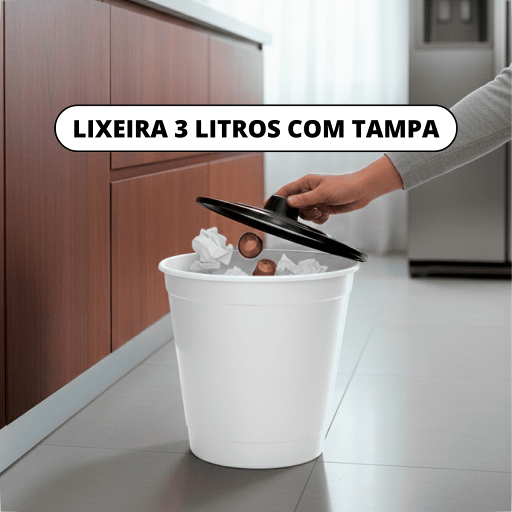 KIT 3 LIXEIRAS REDONDAS 3 LITROS – COM TAMPA Ideal para quem busca praticidade, organização e funcionalidade no dia a dia. Com design compacto e formato redondo, é perfeita para manter o ambiente limpo, facilitando o descarte de resíduos e ocupando pouco espaço. ITENS INCLUSOS: • 03 Lixeiras Redondas 3 Litros com Tampa MEDIDAS: • Altura: 16,5 cm | Diâmetro: 19,5 cm • Capacidade: 3 Litros ESPECIFICAÇÕES: • Material: Plástico resistente e durável • Tipo de tampa: Tampa com encaixe prático • Formato: Redondo • Uso: Banheiro, lavabo, pia, bancada, quarto e escritório • Cores disponíveis: Preto | Branco | Cinza BENEFÍCIOS: • Compacta e funcional: Ideal para ambientes pequenos e bancadas. • Tampa prática: Ajuda a conter odores e manter o ambiente organizado. • Resistente: Produzida em plástico reforçado para uso diário. • Versátil: Pode ser utilizada em diversos ambientes da casa ou escritório. • Fácil de limpar: Superfície lisa que facilita a higienização. DICAS DE USO: • Ideal para banheiros, lavabos, escritórios e quartos. • Perfeita para uso doméstico e profissional. • Utilize sobre pia, bancada ou no chão em ambientes compactos. Escolha a Lixeira Redonda 3 Litros e tenha mais praticidade, organização e eficiência no seu dia a dia!