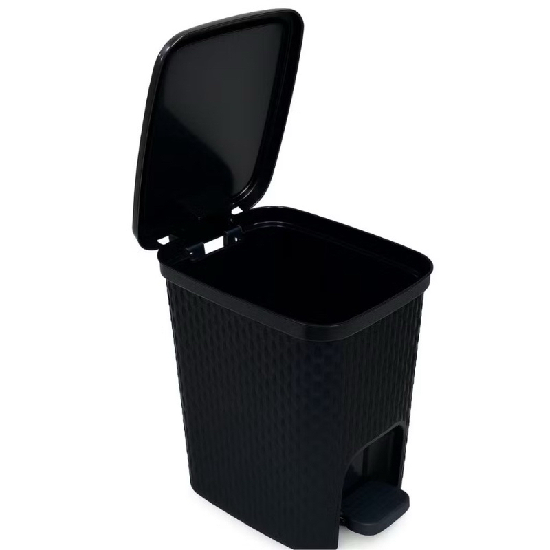 Lixeira Preta 7L com Pedal e Tampa Modelo Rattan – Cesto para Banheiro, Cozinha, Escritório e Quarto