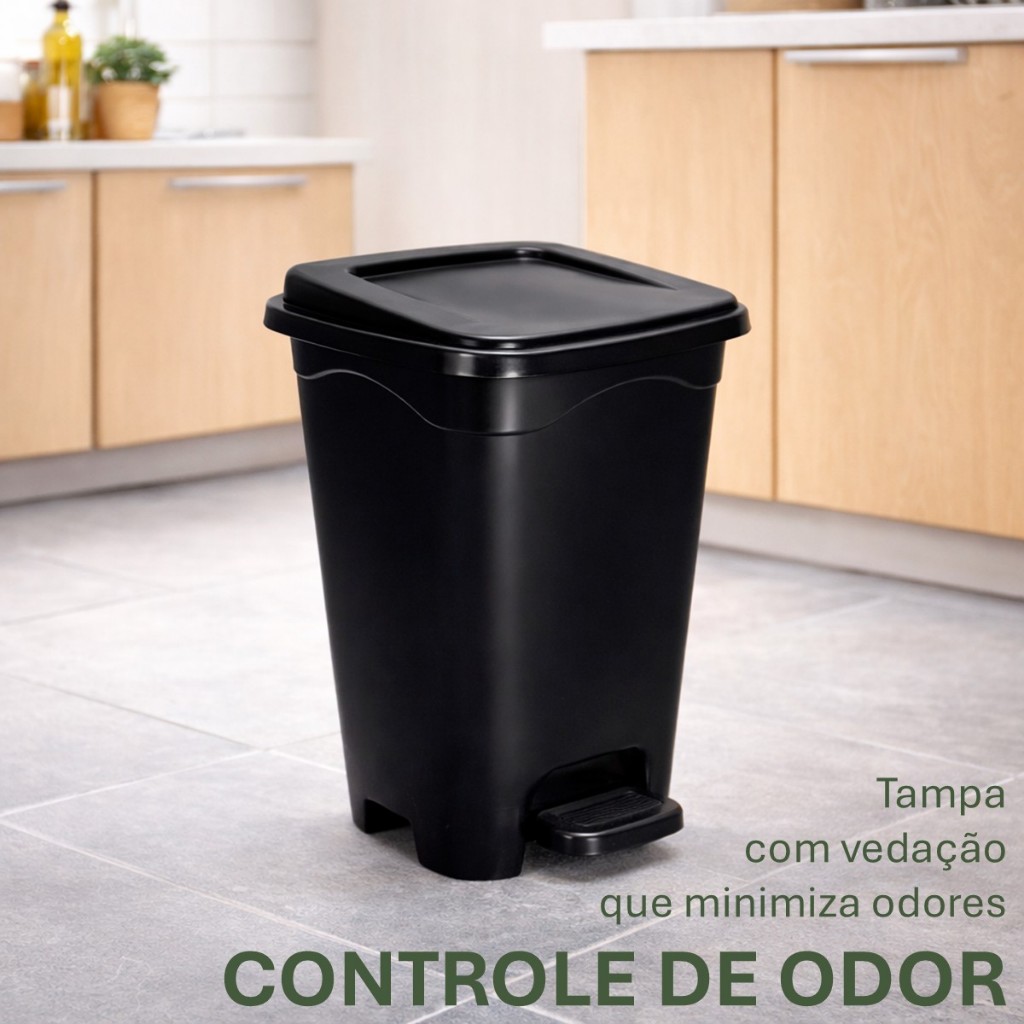 A Lixeira Quadrada 13 Litros com Pedal é perfeita para quem busca higiene, durabilidade e um design moderno que combina com qualquer ambiente. Ideal para cozinha, banheiro, lavanderia, escritório ou consultório, ela possui acionamento por pedal resistente, garantindo mais praticidade no dia a dia. ✨ Principais Benefícios: ✔️ Capacidade de 13 Litros – ideal para uso doméstico ✔️ Sistema com Pedal – mais higiene e praticidade ✔️ Formato Quadrado – encaixa melhor em cantos e espaços reduzidos ✔️ Tampa com vedação eficiente ✔️ Material resistente e fácil de limpar Seu design moderno e funcional transforma um item essencial em parte da organização inteligente do ambiente.