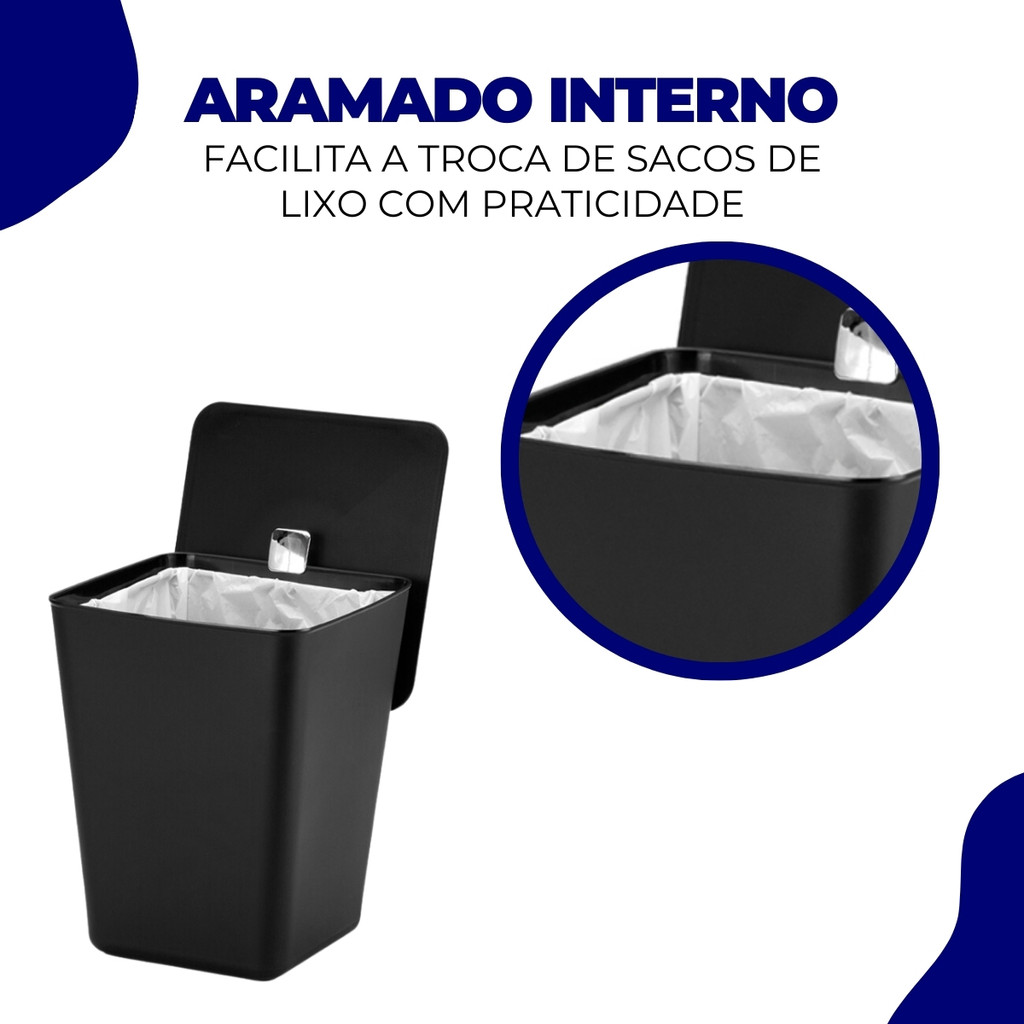 Lixeira Quadrada Banheiro 7 Litros Banheiro Cozinha C/ Aramado Interno Preto Arthi