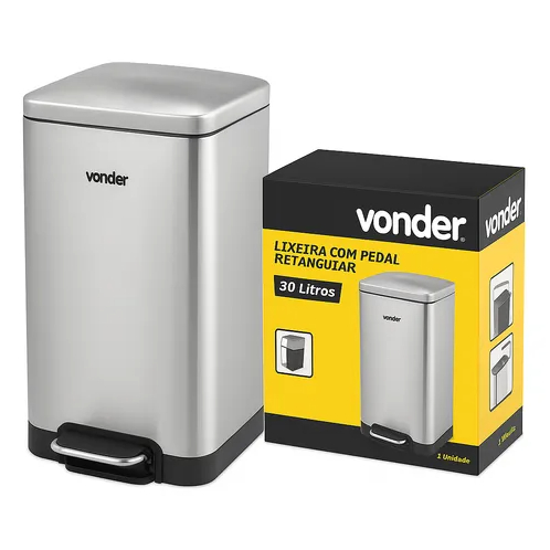 Lixeira retangular 30 litros inox cinza VONDER