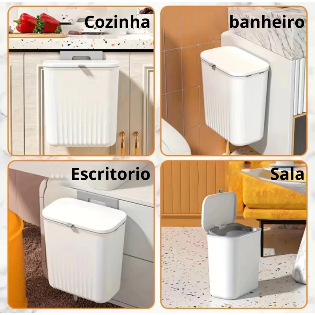 Lixeira Suspensa 9 Litros C/ Tampa E Suporte Alto De Adesivo Cozinha, Banheiro Quarto ENTREGA RÁPIDA