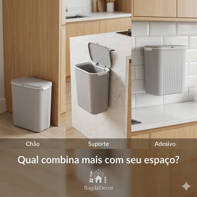 Lixeira Suspensa 9L 3 em 1 + Opção 15L de Chão com Tampa Click para Cozinha, Banheiro e Escritório✅