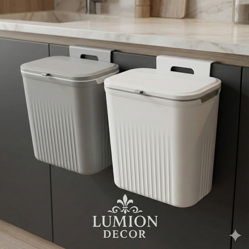Lixeira Suspensa Luxo 9L Para Cozinha e Banheiro, Chão ou Parede, Suporte ou Adesivo De Pendurar