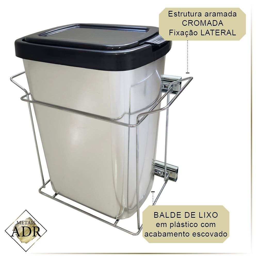 Transforme a sua cozinha em um espaço de pura praticidade e sofisticação com a nossa Lixeira Unitaria Deslizante. Projetada meticulosamente para atender às necessidades de cozinhas modernas, este produto inovador combina funcionalidade, design elegante e eficiência de espaço de uma maneira nunca vista antes. Características do Produto: Baldes de Lixo em Plástico com Acabamento Escovado de 9 Litros. O acabamento escovado não apenas adiciona um toque de elegância, mas também é fácil de limpar e resistente a manchas. Par de Corrediças Telescópicas de Alta Durabilidade: As corrediças telescópicas permitem um deslizamento suave e fácil, garantindo que a lixeira seja acessível sem esforço. Esse mecanismo de alta qualidade assegura uma longa vida útil e uma experiência de usuário excepcional, mesmo com uso frequente. Estrutura Aramada Cromada: A estrutura aramada não só proporciona uma estabilidade robusta, mas também um design atraente que se integra perfeitamente a qualquer decoração de cozinha. O acabamento cromado adiciona um brilho sofisticado e uma camada extra de proteção contra a corrosão. FÁCIL INSTALAÇÃO. Medidas totais: 300mm profundidade x 320mm altura x 185mm largura "medidas em Milímetros". Conteúdo da embalagem: - Estrutura aramada - 1 Lixeira 9 Litros - Um par de corrediças - 4 parafusos para fixação na base do móvel - 4 parafusos + 4 porcar auto travante + 4 arruelas para instalação dos trilhos no aramado - Manual de instrução.