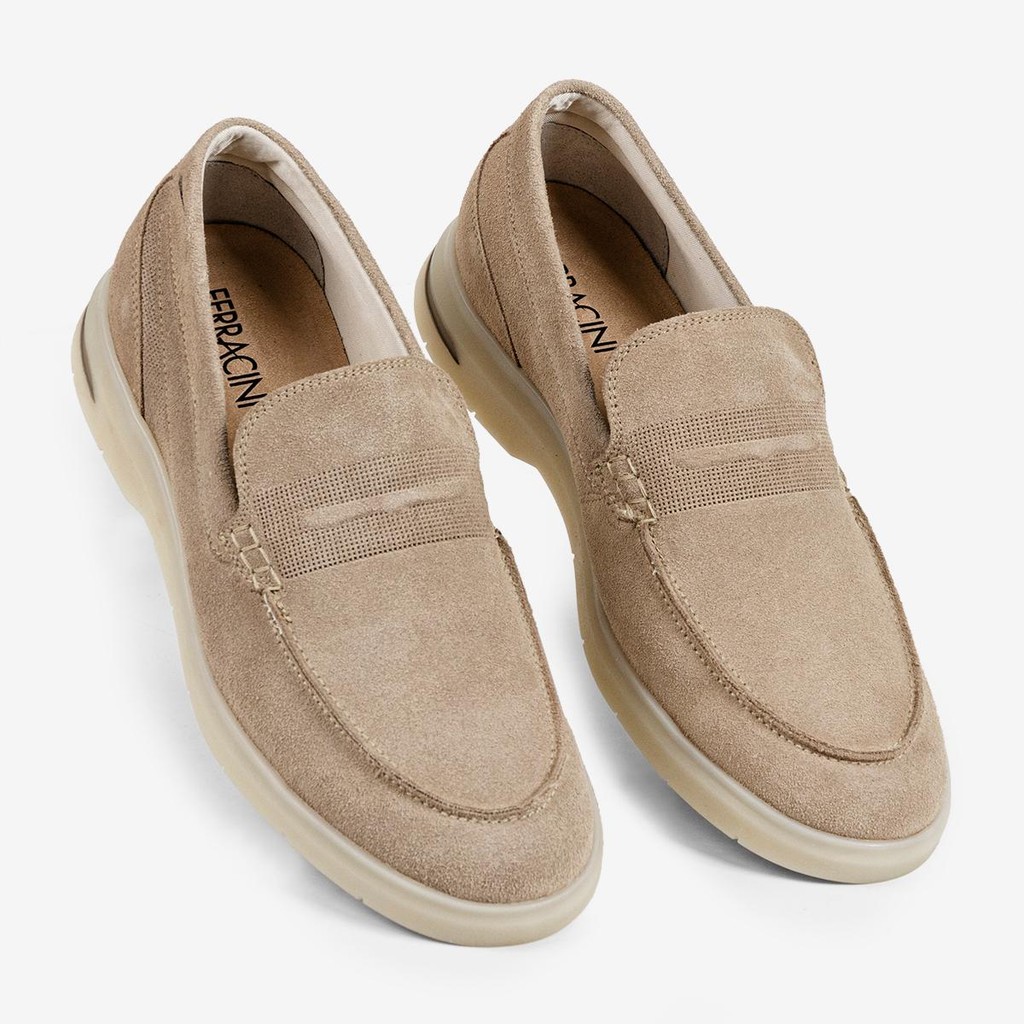 Loafer Malta Plus Bege Ferracini em Camurça Casual Básico