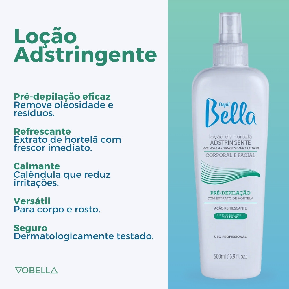 Loção Adstringente Pré-Depilação Depil Bella 500ml Prepare sua pele para depilação de forma eficaz e refrescante com a Loção Adstringente Pré-Depilação Depil Bella 500ml. Com extrato de hortelã, menta e calêndula, ela limpa profundamente os poros, remove oleosidade e impurezas, e proporciona sensação de frescor, garantindo depilação mais confortável e segura. Por que comprar a Loção Adstringente Pré-Depilação Depil Bella? Dermatologicamente testada e não testada em animais, esta loção prepara a pele para a depilação, reduzindo desconfortos e promovendo higienização e frescor. Ideal para todos os tipos de pele, facilita a remoção dos pelos e contribui para uma experiência de depilação mais eficiente e agradável. Sobre o produto: -Loção Adstringente 500ml. -Marca: Depil Bella. -Linha: Pré-Depilação. -Uso corporal e facial. -Dermatologicamente testada. -Não testada em animais. -Enriquecida com extrato de hortelã, menta e calêndula. -Remove oleosidade e impurezas da pele. -Proporciona ação refrescante e higieniza a região. Indicado para: -Todos os tipos de pele. -Preparar a pele antes da depilação. Modo de uso: -Umedeça um algodão. -Aplique sobre a pele, higienizando a região desejada. -Seque bem o local. -Proceda com a depilação. Precauções: -Uso externo. -Evitar contato com olhos e mucosas. -Manter fora do alcance de crianças. Com fórmula refrescante, adstringente e dermatologicamente testada, a Loção Adstringente Pré-Depilação Depil Bella 500ml garante pele limpa e preparada para depilação mais eficiente e confortável. Surgiu alguma dúvida? Entre em contato com a gente! Boas Compras :)
