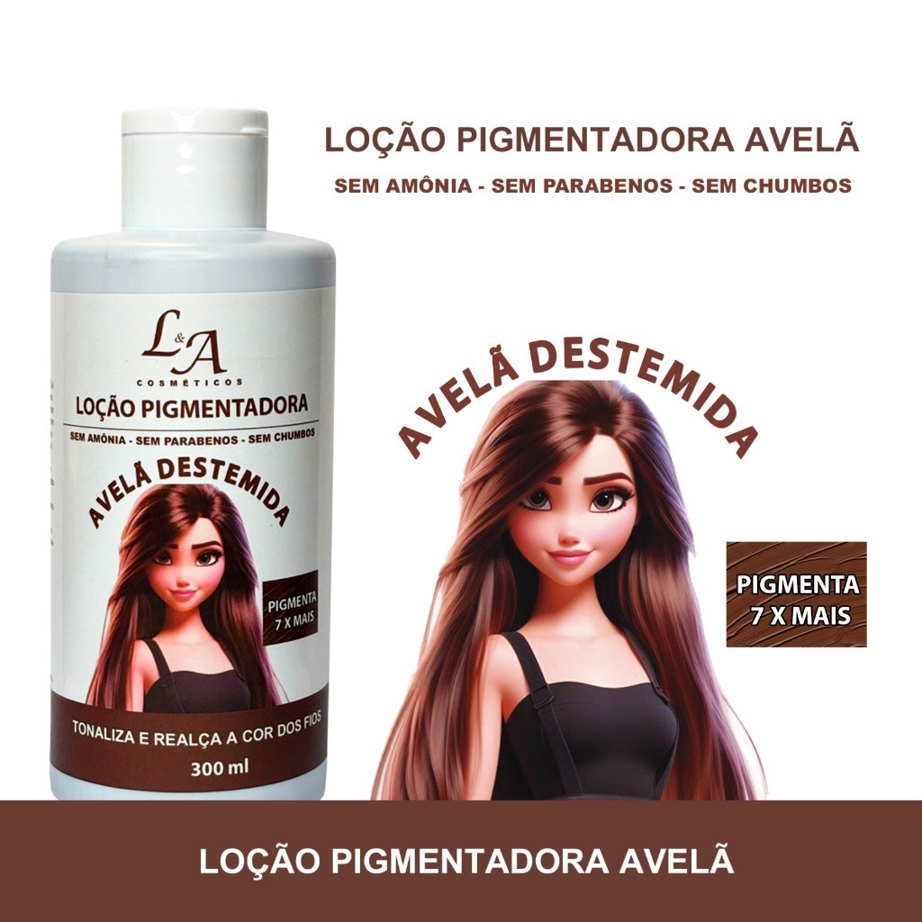 Loção Condicionador Pigmentador Tonalizante – Tinta Sem amônia PRETO - RUIVO - MARSALA - AVELÃ L&A Cosméticos Cabelos sempre vibrantes e livres dos fios brancos! Diga adeus aos fios brancos e mantenha a cor dos seus cabelos sempre impecável com a Loção Condicionadora Pigmentadora! Disponível nas versões Preto Black, Ruivo Intenso, Avelã Aventureira e Marsala Destemida , essa fórmula inovadora garante cobertura uniforme dos fios, revitalizando a cor e proporcionando hidratação profunda. Benefícios: Cobre 100% dos fios brancos, proporcionando um visual renovado. Realça a cor natural e intensifica o brilho. Hidrata e nutre os fios, deixando-os macios e sedosos. Fácil aplicação – sem precisar de coloração permanente! Ideal para quem quer manter o tom vibrante no dia a dia sem danificar os fios! Escolha seu tom perfeito: Preto Black: Para cabelos pretos profundos e intensos, garantindo um visual marcante e sofisticado. Ruivo Intenso: Perfeito para quem deseja um ruivo vibrante e natural, sem desbotamento precoce. Modo de uso: Aplique nos cabelos limpos e úmidos, deixe agir por alguns minutos e enxágue. O resultado é um cabelo pigmentado, hidratado e cheio de vida! Experimente agora e mantenha sua cor sempre impecável!
