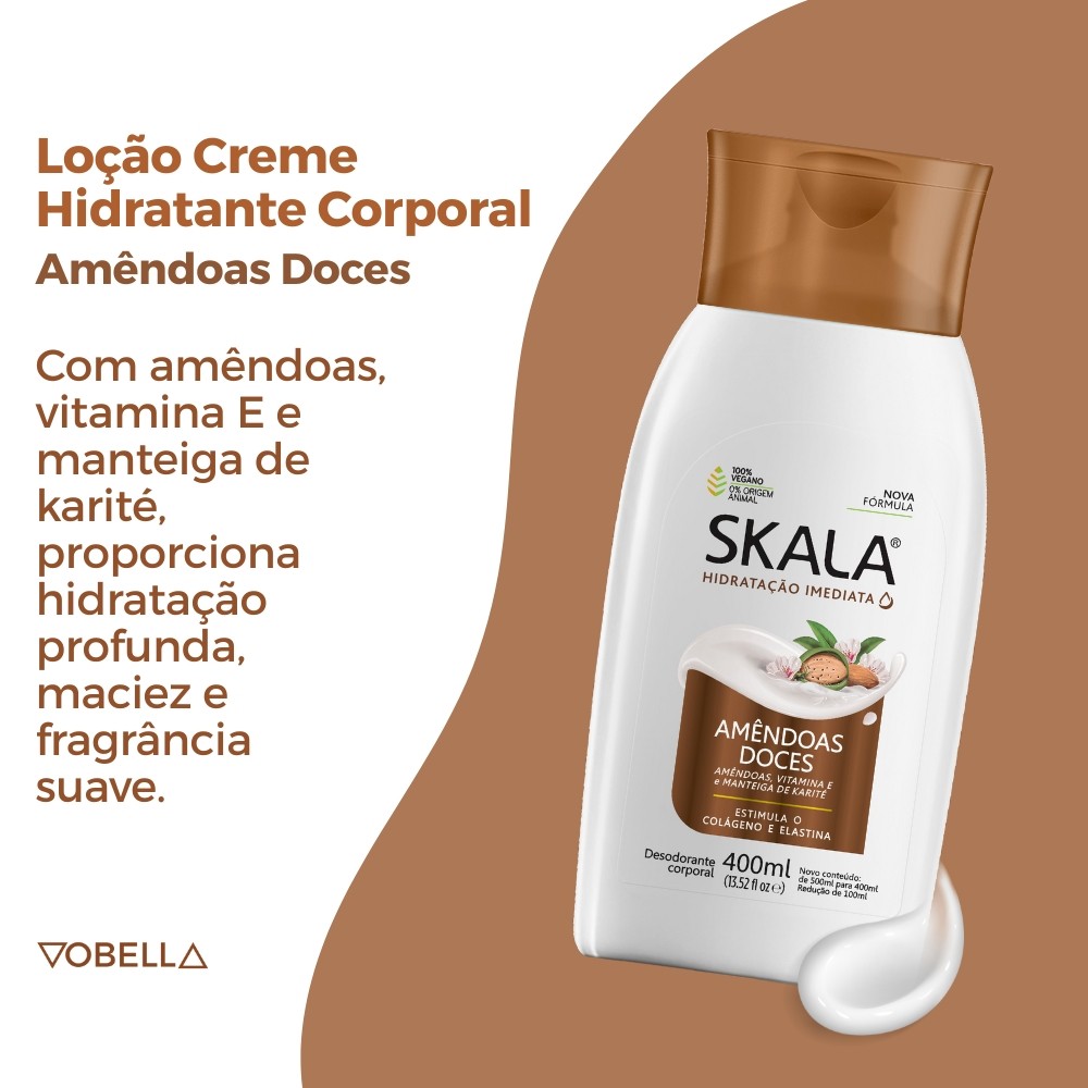Loção Creme Hidratante Corporal Amêndoas Doces Skala 400ml
