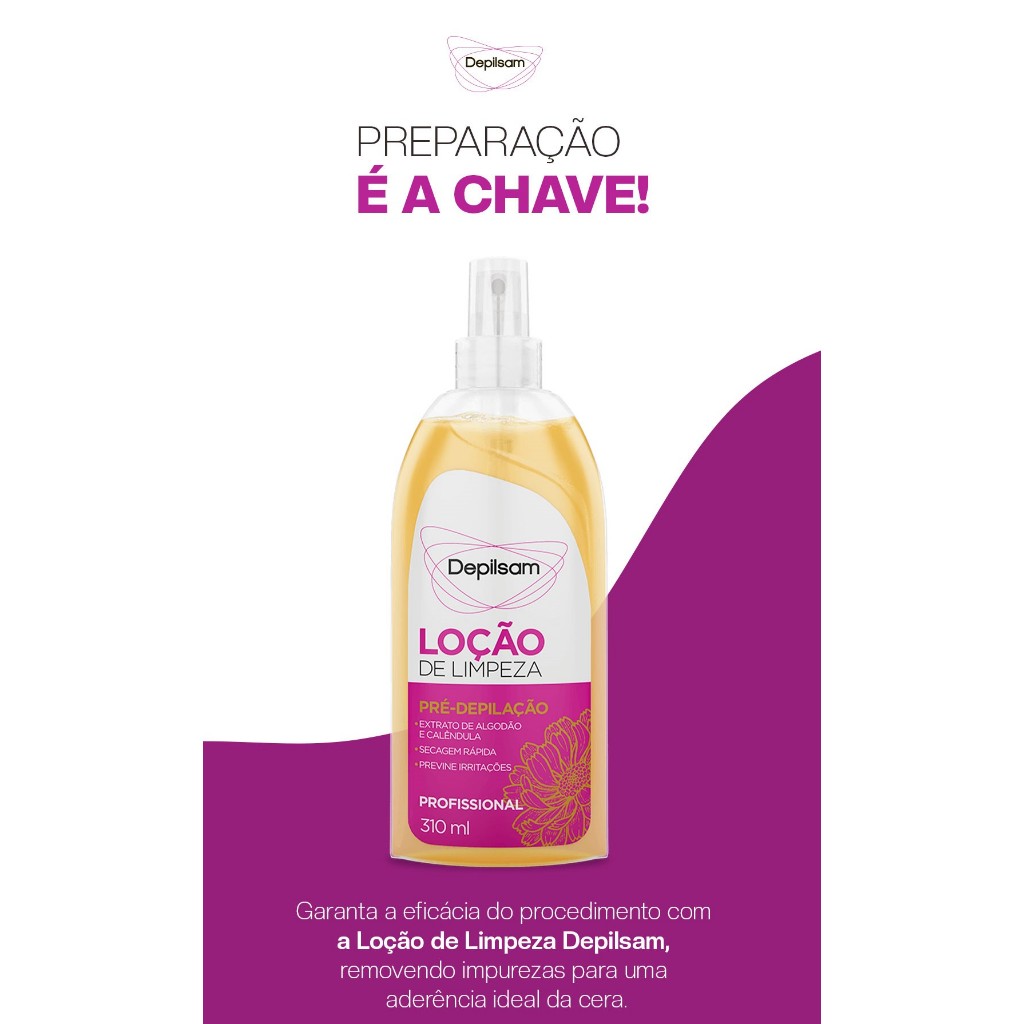 Prepare sua pele para uma depilação perfeita com a Loção Depilsam! ✨💆♀️ A Loção de Limpeza Pré Depilação Depilsam 150Ml foi especialmente desenvolvida para preparar sua pele antes da depilação. Sua fórmula suave e eficaz limpa profundamente, removendo resíduos de oleosidade e impurezas, garantindo uma pele pronta para uma depilação mais eficiente e suave. Ideal para todos os tipos de pele, ela ajuda a promover uma experiência de depilação mais confortável e sem irritações. ✨Limpeza Profunda: Remove oleosidade, sujeiras e impurezas da pele. ✨Preparação para Depilação: Garante que a depilação seja feita de maneira mais eficaz e suave. ✨Fórmula Suave: Ideal para todos os tipos de pele, incluindo as mais sensíveis. ✨Praticidade: Frasco de 150ml que oferece o tamanho perfeito para o uso diário. Modo de Uso: Aplique a loção sobre a área a ser depilada. Massageie suavemente até que a pele esteja limpa e sem resíduos. Aguarde alguns segundos para a absorção e prossiga com a depilação. Após a depilação, siga com o cuidado adequado para a sua pele. Composição: Aqua, Alcohol, Propylene Glycol, Polysorbate 20, Glycerin, Calendula Officinalis Flower Extract, Chamomilla Recutita Flower Extract,Triethanolamine/Nonoxynol/Aqua, Gossypium Herbaceum Extract, Salicylic Acid, Parfum, Dmdm Hydantoin, Menthol, Hexyl Cinnamal, Amyl Cinnamal, Limonene, Linalool, Benzyl Salicylate, Citronellol, Geraniol, Ci 19140.