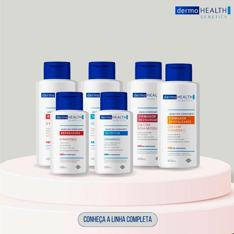 Loção Dermo Health D-Pantenol - Hidratação e Reparo Profundo e 48h de cuidado Intensivo! A Loção Deo Hidratante Dermo Health Genetics Reparadora com D-Pantenol 400ml é ideal para quem busca um cuidado eficaz e duradouro para a pele seca e extra seca. Sua fórmula contém D-Pantenol, ativo consagrado por sua capacidade de hidratar profundamente, fortalecer a barreira cutânea e acelerar a regeneração da pele. Com textura leve e rápida absorção, essa loção oferece 48 horas de hidratação contínua, sem deixar a pele pegajosa. É dermatologicamente testada e segura para uso diário, sendo indicada para todas as idades. Além disso, ajuda a restaurar o equilíbrio natural da pele, promovendo maciez, firmeza e alívio imediato do ressecamento. Ideal para uso após o banho ou sempre que a pele precisar de nutrição intensiva, a Loção Dermo Health é uma aliada essencial no cuidado diário da pele seca e sensibilizada. Benefícios do produto: - 48h de hidratação intensa e prolongada - Restaura a barreira natural da pele desde a primeira aplicação - Textura suave e rápida absorção, sem sensação oleosa - D-Pantenol: ação reparadora e hidratante - Dermatologicamente testado - Indicado para pele seca e extra seca - Promove maciez, firmeza e conforto imediato Como usar: 1. Aplique a loção sobre a pele limpa e seca, espalhando com movimentos suaves até completa absorção. 2. Pode ser usada diariamente, após o banho ou sempre que sentir a pele ressecada. 3. Reaplique nas áreas mais secas do corpo, como cotovelos, joelhos e pernas.