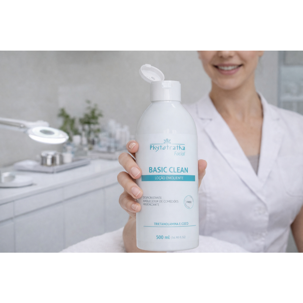 Loção Emoliente Trietanolamina e Coco Phytotratha 500ml Loção emoliente e desincrustante, facilita a remoção de comedões e diminui a oleosidade excessiva e pré tratamento do couro cabeludo oleoso. FREE CORANTE E FRAGRÂNCIA. Emoliente e Desincrustante Indicação: Ideal para fazer emoliência, facilitando a extração de comedões. Também é um excelente desincrustante, remove o excesso de secreção sebácea da superfície da pele. Utilizado para auxiliar os tratamentos de limpeza de pele e para terapia capilar, desobstruindo os poros e folículos capilares. Além de hidratar, equilibra a quantidade de água na pele. Ativos: Trietanolamina (10%). Composto Orgânico Alcalino que auxilia na quebra das células formadoras da camada córnea, facilitando a emoliência da pele e posterior extração de comedões. Coco. Excelente Umectante e Emoliente Natural, devido sua alta concentração de Óleos e Ácidos Graxos Rendimento: Loção Desincrustante 500ml - 100 aplicações. Precauções: Manter fora do alcance de crianças; Uso externo; Proteja da luz, calor e umidade; Não utilizar sobre a pele irritada ou lesionada; Evitar contato com os olhos; Em caso de irritação suspender o uso imediatamente. Modo de usar: Após higienização e esfoliação. Umedecer algodões ou a máscara desidratada com a Loção Emoliente com Trietanolamina e Coco, ocluir toda a face para promover maior emoliência. Utilize a máscara térmica ou vapor por 20 minutos, para auxiliar a extração. Também pode ser utilizado nos aparelhos Eletroestéticos de Desencruste para saponificação do sebo e posterior controle de oleosidade, Diminuição dos óstios dilatados e tratamentro de Acne. Estética Facial