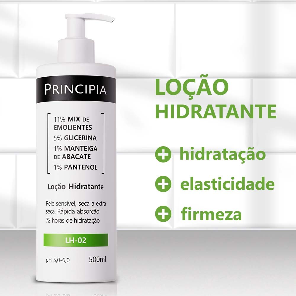Loção Hidratante com 11% de mix de emolientes, 5% de glicerina, 1% de manteiga de abacate e 1% de pantenol para hidratar, aumentar o viço, melhorar a textura e acalmar a pele. INDICAÇÕES Principais Acalmar a peleMelhorar a texturaMelhorar o viçoPromover hidratação Complementares Diminuir a queratose pilarProporcionar maciezReduzir a foliculite Tipos de pele Todos INGREDIENTES ATIVOS GLICERINA Composto orgânico hidrofílico, considerado um dos mais eficazes umectantes utilizados em formulações para cuidados com a pele, proporciona hidratação devido sua capacidade de atrair e reter líquidos. Além da ação superficial, a Glicerina consegue penetrar na barreira cutânea, mantendo sua eficácia em camadas internas da pele durante vários dias. PANTENOL Precursor da vitamina B5, substância produzida naturalmente pelo corpo humano, que além de suas propriedades hidratantes, proporciona alívio de irritações, redução de inflamações, fortalecimento da barreira protetora e regeneração de tecidos da pele. MANTEIGA DE ABACATE Possui ação regeneradora e reconstrutiva, auxiliando na reparação da pele e no fortalecimento da barreira cutânea, ajuda a manter a firmeza e a elasticidade, além de promover a hidratação da pele. MODO DE USO Use diariamente, de manhã e à noite , preferencialmente após o banho » Aplique o produto na pele limpa e seca, espalhando pelo corpo » Massageie suavemente até completa absorção » Não aplique na pele irritada ou lesionada » Evite exposição solar durante o uso do produto » Para o uso durante a gravidez, consulte um médico DUVIDAS FREQUENTES Contém parabenos, petrolatos ou silicones? Não. Sua composição também não inclui corantes, fragrância nem glúten. Está regularizada na Anvisa? Sim, conforme o processo número 25351.186961/2025-18. Causa descamação da pele? Em geral, não provoca descamação visível da pele. Foi testada em animais? Não. A PRINCIPIA não realiza testes em animais. Qual o prazo de validade? Três anos, contados da data de fabricação. Pode ser usada junto com outras fórmulas? Sim. Praticamente não há restrições para uso conjunto com outros ativos. Causa acnes ou cravos? Não. Pelo contrário, costuma ter efeito benéfico e ser recomendada para peles acnêicas. Ainda com dúvidas? Deixe sua pergunta nos comentários.