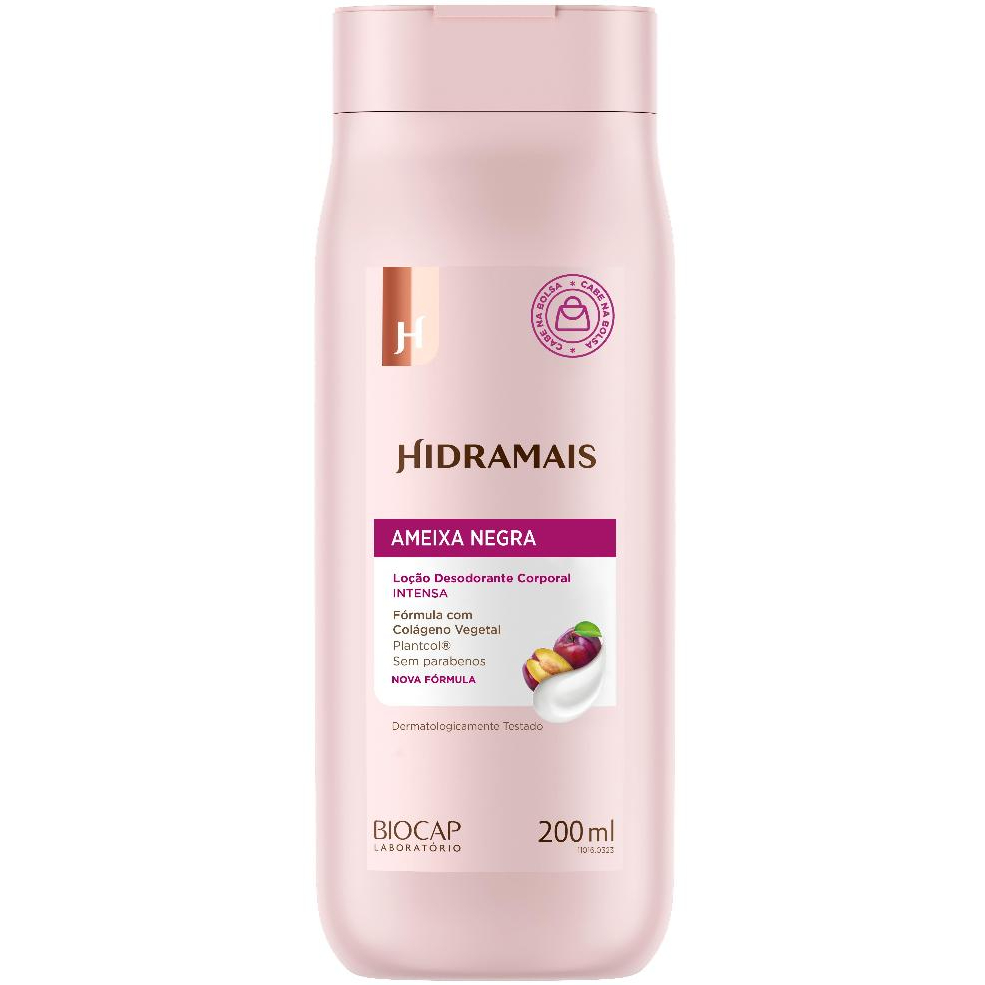 O que é ? A Loção Desodorante Ameixa Negra Hidramais possui formulação leve, não oleosa e é enriquecida com Colágeno Vegetal. Tem ação desodorante e hidratante. Melhora a elasticidade e deixa a pele levemente perfumada. O que ele faz? Desodoriza, hidrata e melhora a elasticidade da pele deixando um toque aveludado. O que ele tem? Sua Fórmula nutritiva com Vitamina E, age na pele para uma hidratação natural e profunda. Como usar? Permitido para gestantes. Coloque uma pequena quantidade da loção nas mãos e espalhe pelo corpo, até a absorção completa do produto. Protocolo Para garantir melhores resultados, use diariamente e experimente a linha completa: Sabonete Ameixa Negra Hidramais e Óleo Corporal Ameixa Negra & Vitamina E.