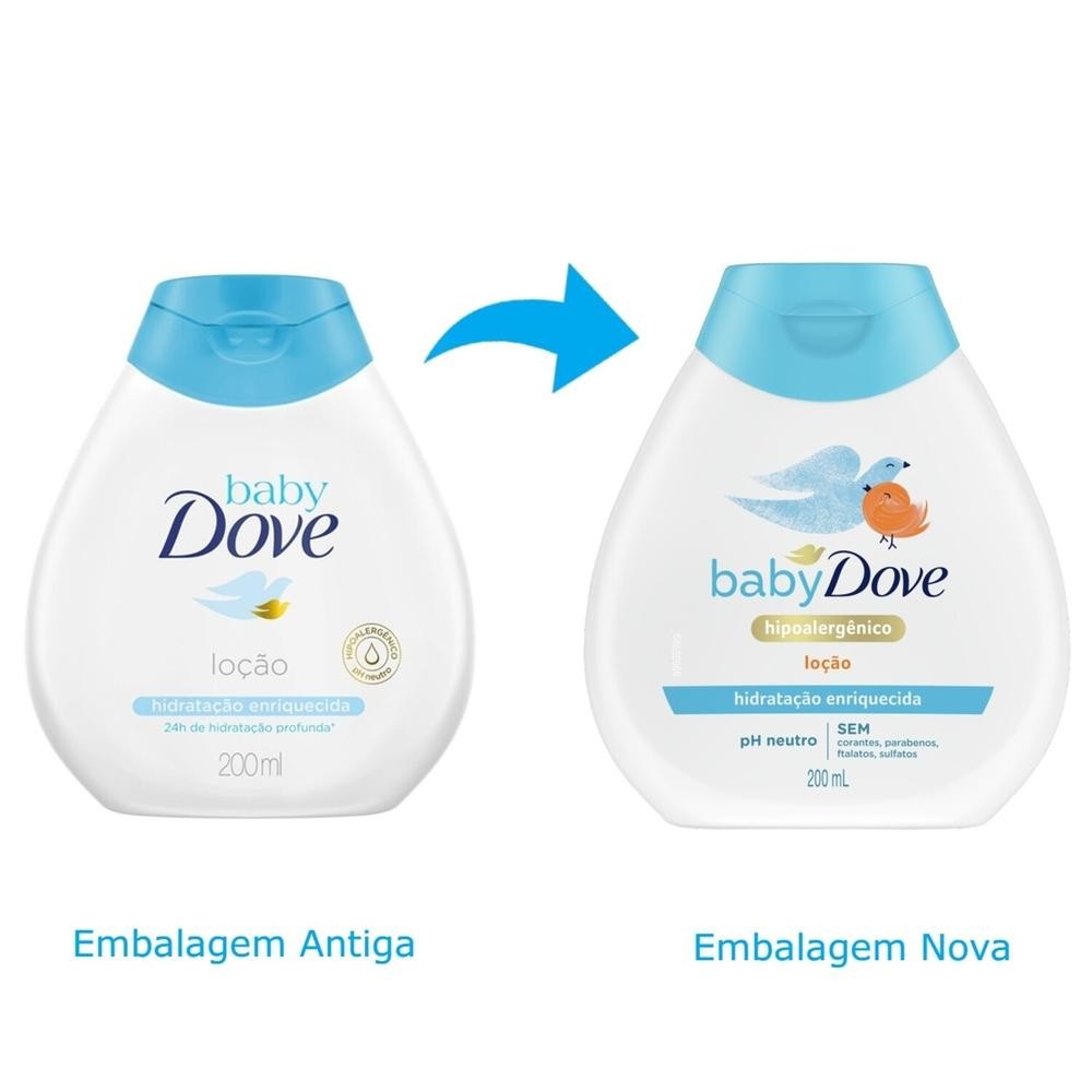 A pele do bebê é delicada e pode perder a hidratação facilmente durante o banho. Para ajudar a repôr a hidratação essencial da pele, criamos a Loção Hidratante Baby Dove - Hidratação Enriquecida. Hipoalergênica, com Ph balanceado e um perfume desenvolvido para a delicada pele do bebê, ela hidrata a pele por até 24 horas. Desenvolvida para proteger a preciosa barreira da pele do seu bebê, essa fórmula rica e suave acalma a pele seca logo no primeiro uso. Testada por dermatologista e pediatra, com essa loção você sabe que está proporcionando a seu pequeno aquele cuidado extra especial que ele merece.