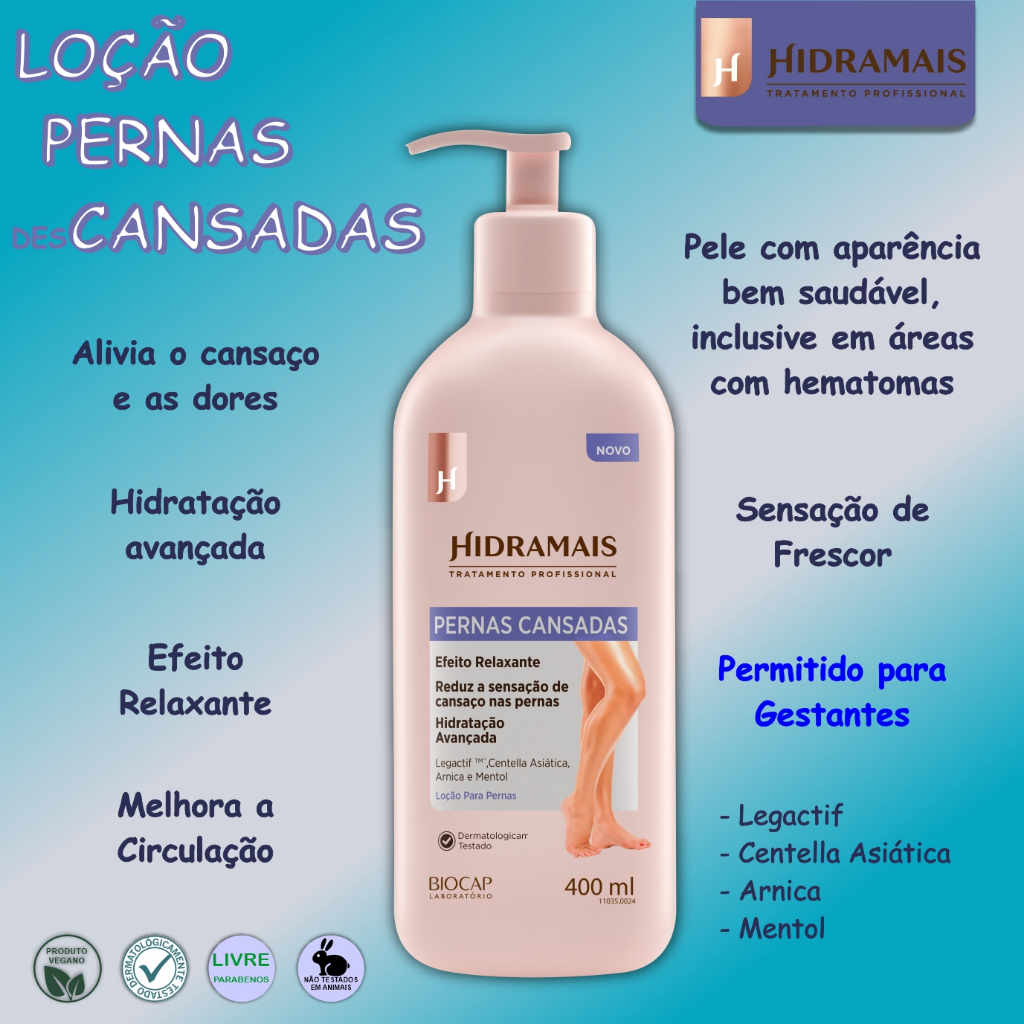 LOÇÃO Hidratante Relaxante de Arnica para PERNAS Cansadas 400ml HIDRAMAIS - Hidratação Avançada, Alivia Dores e Inchaço