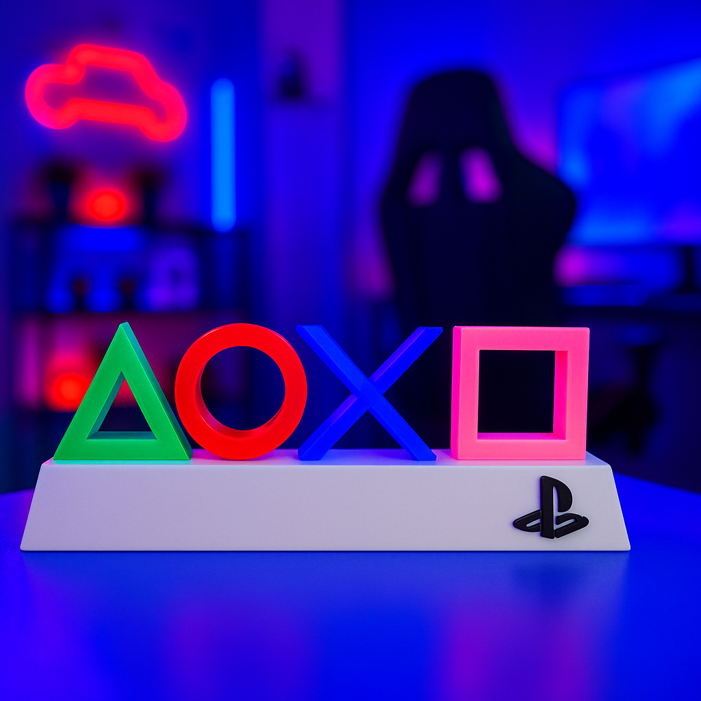 🎮✨ Dê um toque gamer e moderno à sua decoração com esse Logo PlayStation Decorativo Geek! LEIA COM ATENÇÃO A DESCRIÇÃO DO PRODUTO PARA UMA ESCOLHA ASSERTIVA Os símbolos do controle (▲ ● ✖ ■) em cores vibrantes, perfeito para estantes, mesas de setup ou até como presente criativo. ✅ Detalhes do produto: Material: Impressão 3D de alta qualidade (PLA de ULTRARESISTÊNCIA) Cores: Verde, Vermelho, Azul e Rosa (como no clássico controle PlayStation Tamanho aproximado: 13,5 cm, 18cm e 23cm Base preta ou branca, elegante para apoio e estabilidade Acabamento resistente, durável e de alta performance e qualidade 🎁 Presente perfeito para colecionadores, gamers e fãs de PlayStation seja PS1, PS2, PS3, PS4 e PS5 📌 Ideal para decorar: seu setup gamer, escritórios, estúdios, estantes e ambientes geeks. OBS: IMAGEM ILUSTRATIVA - OS SIMBOLOS NÃO POSSUEM LEDS INTERNOS, SE ATENTAR A DESCRIÇÃO DO PRODUTO. As condições reais do produto podem ser avaliadas diretamente no vídeo do anuncio ou pelos comentários/avaliações anteriores.