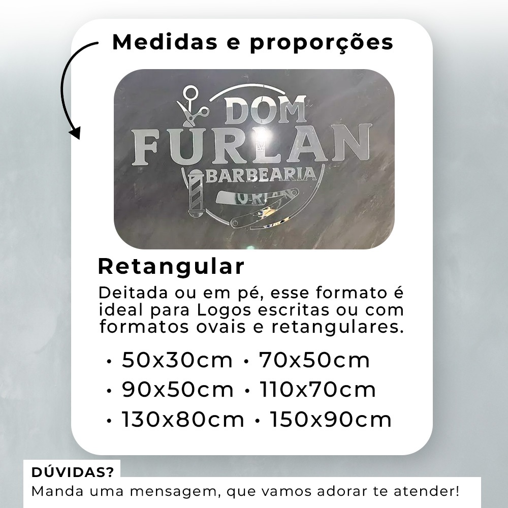 ✨ Logomarca ou Letreiro em Acrílico Personalizado – Destaque Sua Marca com Sofisticação! 🚀 Transforme o visual do seu negócio com um letreiro moderno e personalizado em acrílico espelhado de 2mm! Leve mais profissionalismo, brilho e impacto visual para sua marca. 🎯 Por que escolher nossos letreiros personalizados? ✅ Personalização Total: Nome, frase ou logo do seu negócio com acabamento profissional. 🎨 Cores Sofisticadas: Dourado, Prata, Rosé Gold, Preto e Branco – escolha a que mais combina com seu estilo! 🏢 Design Versátil: Ideal para lojas, clínicas, salões, escritórios, quartos ou home office. 📐 Tamanhos Disponíveis (Largura x Altura): até 50x30 cm até 70x50 cm até 90x50 cm até 110x70 cm até 130x80 cm até 150x90 cm 📝 Importante: O layout será ajustado proporcionalmente ao tamanho comprado, respeitando a maior dimensão (largura ou altura). Evite letras menores que 5 cm, para garantir boa visibilidade. Após a compra, envie sua logo em alta resolução pelo chat da Shopee em até 12 horas. 🔧 Fácil de Aplicar 📌 Acompanha molde (gabarito de instalação) para posicionamento perfeito. 🛠️ Fixação com fita dupla face já aplicada. 💡 Ideal para superfícies lisas e planas. ( Não recomendamos para paredes texturizadas ou irregulares. ) 💦 Cuidados e Limpeza Remova a película protetora apenas após a aplicação. Limpeza somente com pano macio, água e sabão neutro. ❌ Não utilize álcool ou produtos abrasivos. 🌟 Aplicações Perfeitas • Fachadas internas de loja • Vitrines e ambientes comerciais • Escritórios e consultórios • Decoração moderna em casa 💬 Como Funciona? 1️⃣ Faça sua compra 2️⃣ Envie seu logo ou frase no chat 3️⃣ Receba um letreiro incrível e sob medida 🛒 GARANTA JÁ O SEU! Aumente o reconhecimento da sua marca com elegância e qualidade. ⭐ Avalie nosso trabalho! Sua avaliação nos ajuda a crescer 🙏 Se gostou, deixe ⭐⭐⭐⭐⭐ e um comentário. É rápido, gratuito e faz toda a diferença para a gente 💛 ⚠️ REGRA IMPORTANTE SOBRE PERSONALIZAÇÃO Caso o cliente NÃO ENVIE a logo no prazo de até 72 horas após a compra, será produzida e enviada automaticamente a frase padrão abaixo: “Aqui tem Deus em cada detalhe” 📐 MEDIDAS DO PRODUTO Altura da frase: 10 cm Comprimento total aproximado: 100 cm Material: Acrílico Espelhado Dourado