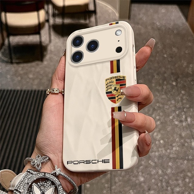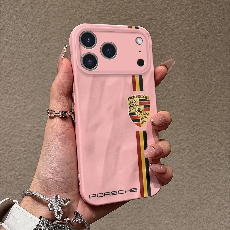 Logotipo da moda Porsche, capa plissada, iPhone 17 17Pro 17ProMax Air 11 16 15 14 13 12 Pro Max Plus
