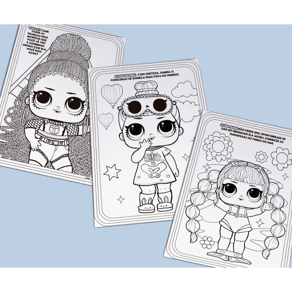 A festa das bonecas LOL Surprise aguarda seu colorido para ser a melhor de todas! Já vem com 6 lápis de cor e adesivos para completar a brincadeira.