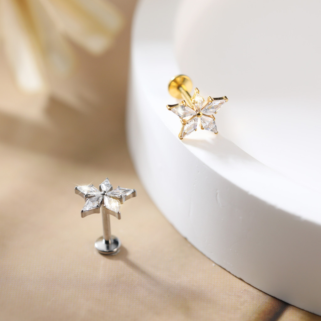 Lomiss Piercing Helix Labret Titânio Pvd Flor Zircônia Cravejada Orelha Tragus