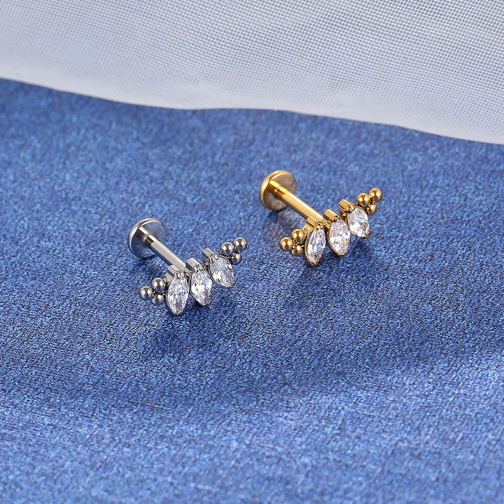 Lomiss Piercing Helix Tragus Conch Boca-Medusa Labret Aço Cirúrgico 3 Pedras Zircônia Cravejada