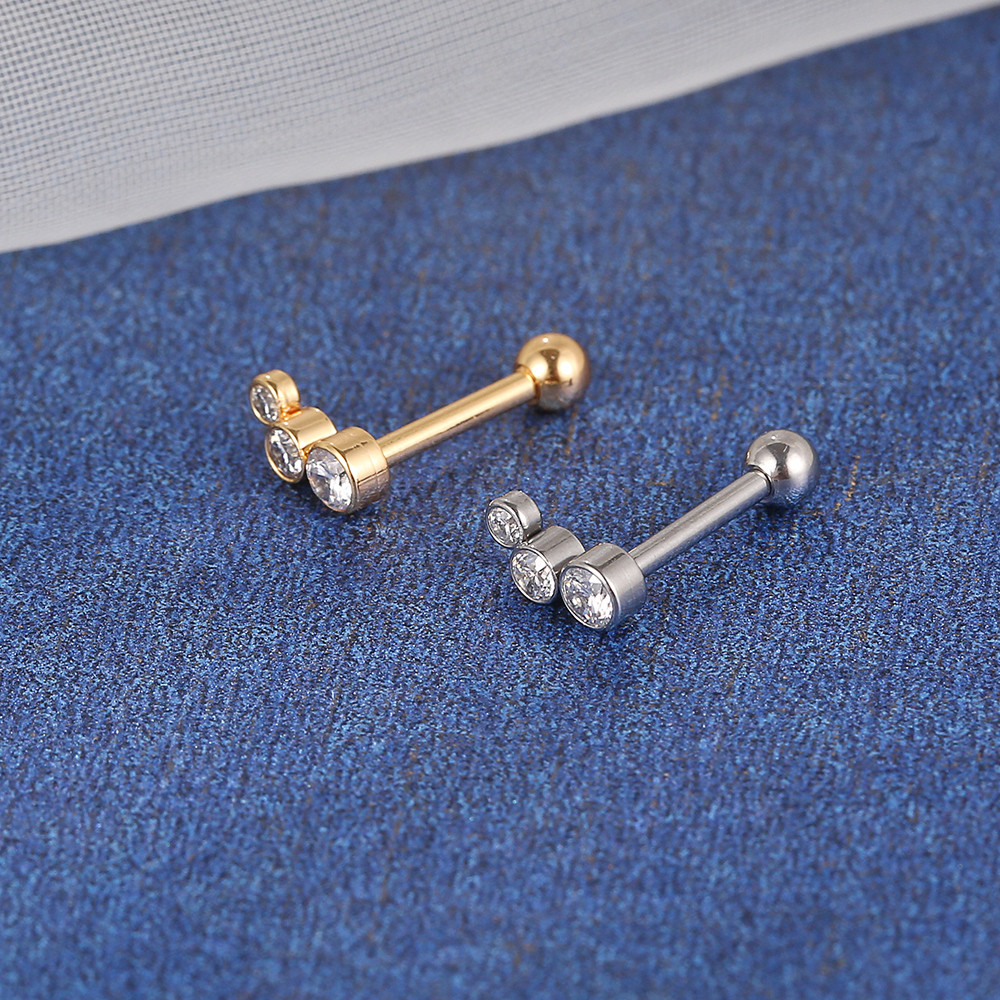 Lomiss Piercing Helix Tragus Conch Minibarbell Aço Cirúrgico Trio Zircônia Cravada