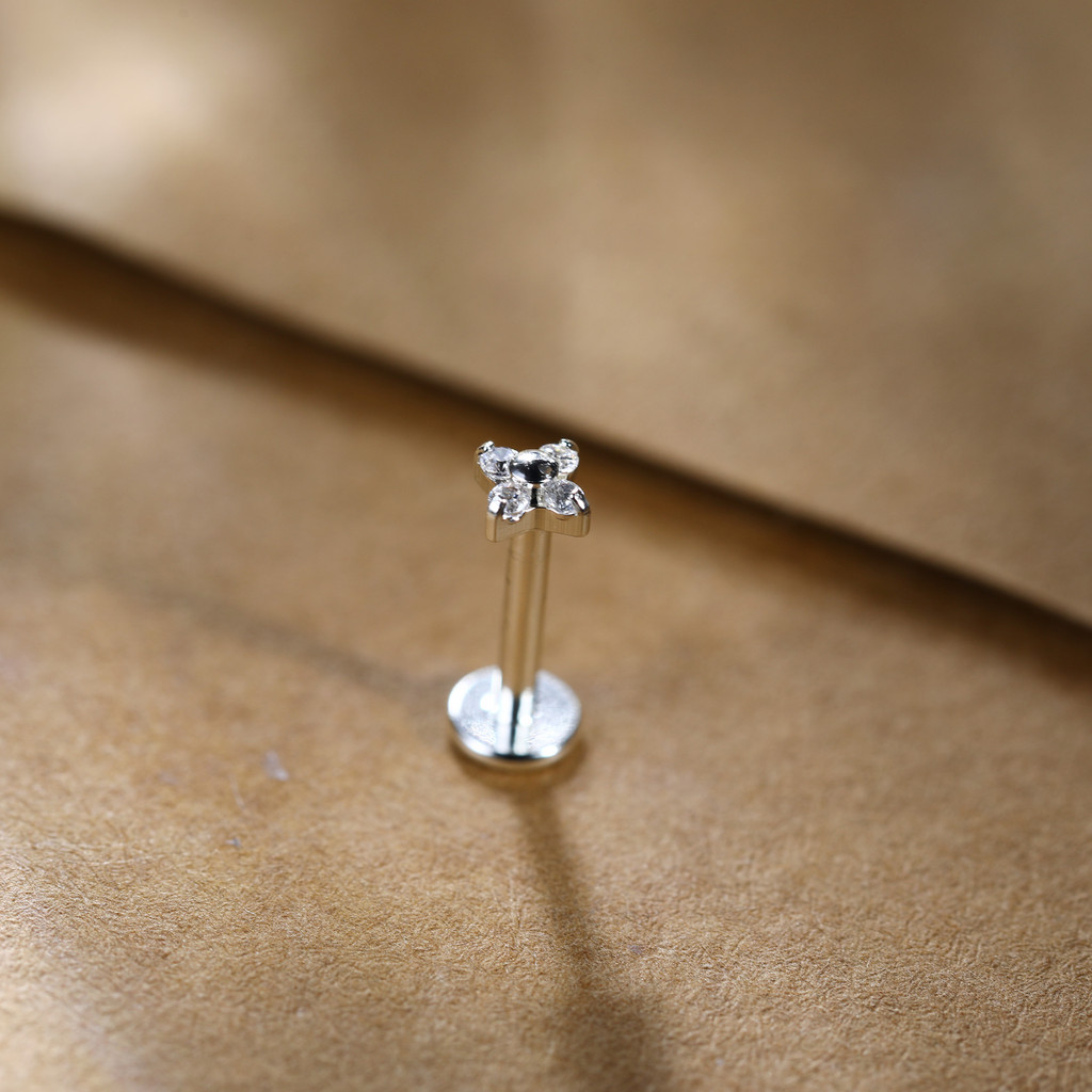 LOMISS Piercing Labret Prata 925 Flor Zircônia Cravejada Piercing Daith Tragus Helix Conch Labret