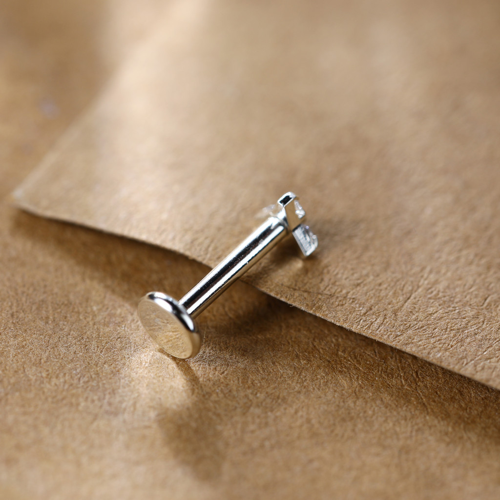 LOMISS Piercing Labret Prata 925 Trinity Zircônia Cravejada Orelha Nostril