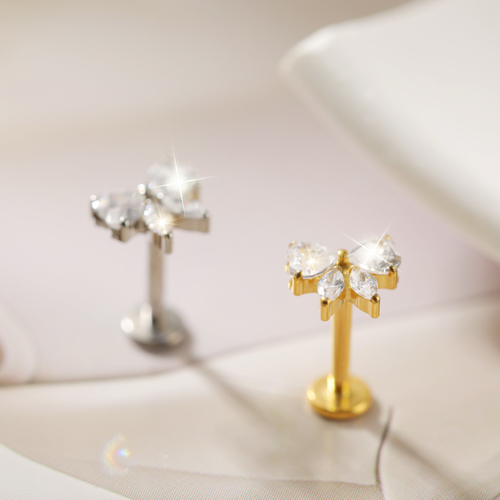 Lomiss Piercing Labret Titânio Pvd Laço Zircônia Cravejada Orelha Helix Conch Nariz Tragus