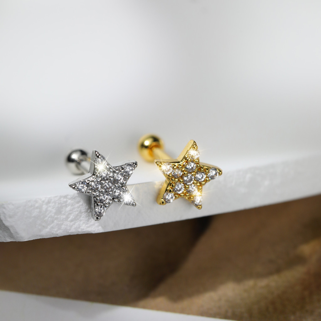 Lomiss Piercing Orelha Flat Conch Tragus Barbell Cobre Estrela Zircônia