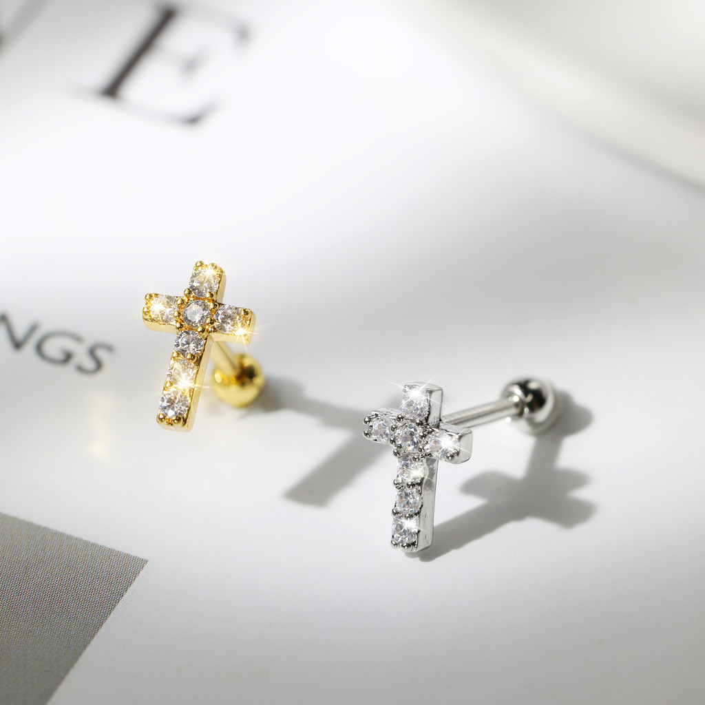 Lomiss Piercing Orelha Helix Conch Tragus Barbell Cobre Cruz Zircônia