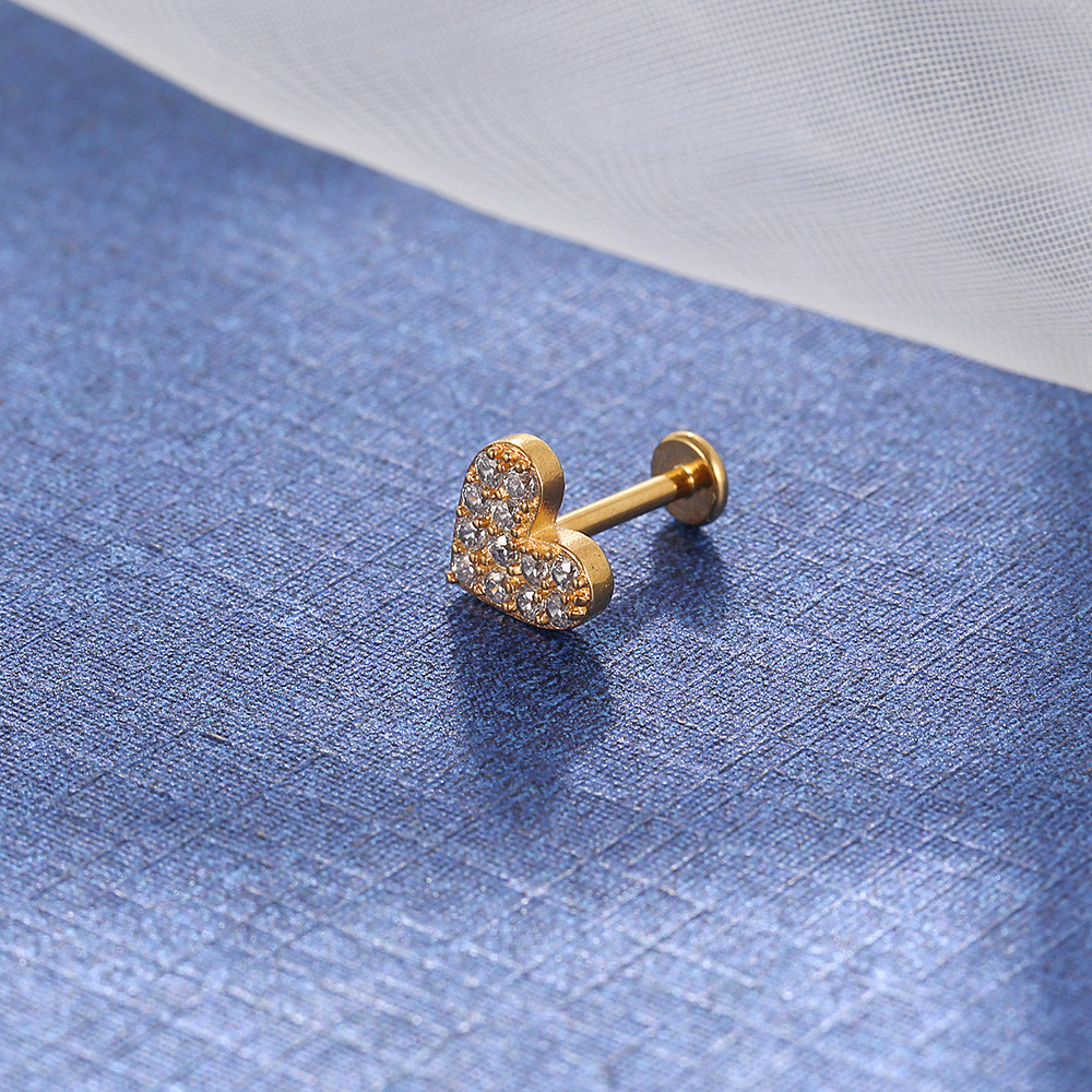 Lomiss Piercing Orelha Helix Tragus Labret Aço Cirúrgico Coração Zircônia Cravejada