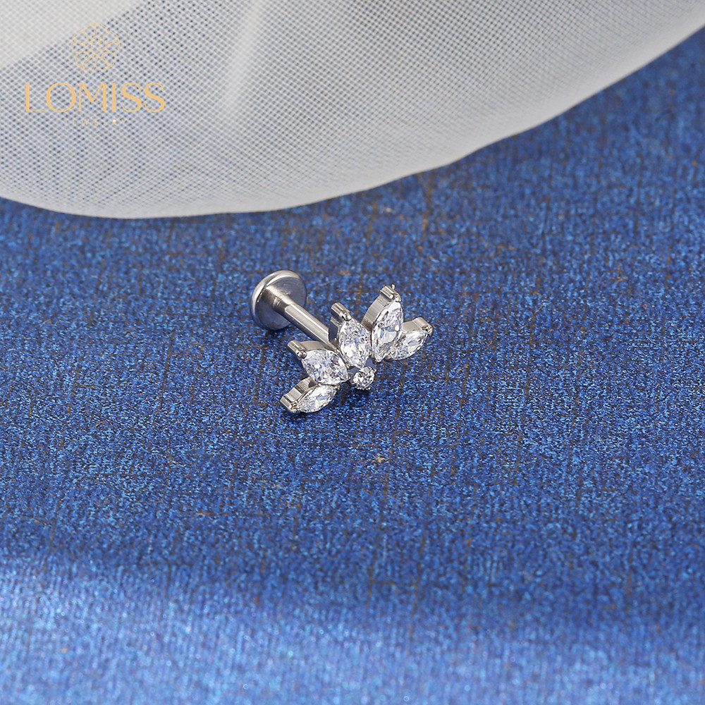 【Lomiss】Piercing Orelha Labret Aço Cirúrgico Folhas Zircônia Cravejada Piercing Ponto de Luz Hélix