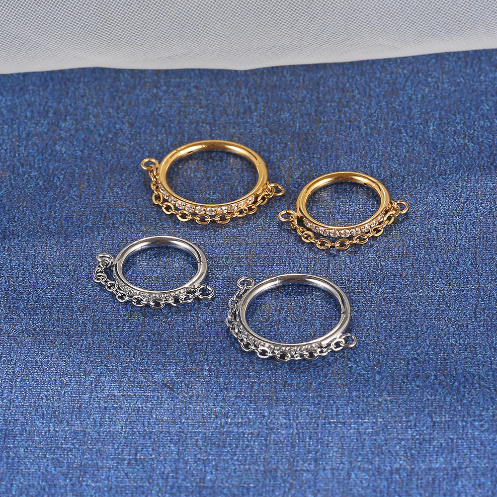Lomiss Piercing Septril Rook Conch Nariz Argola Aço Cirúrgico Segmento Articulado Zircônia, Corrente