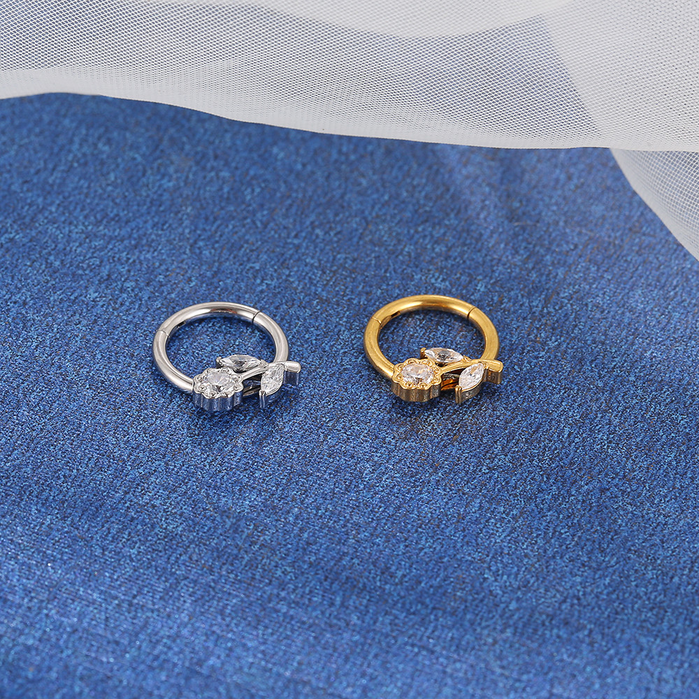 Lomiss Piercing Septril Rook Conch Nariz Argola Aço Cirúrgico Segmento Articulado Flor Zircônia Cravejada