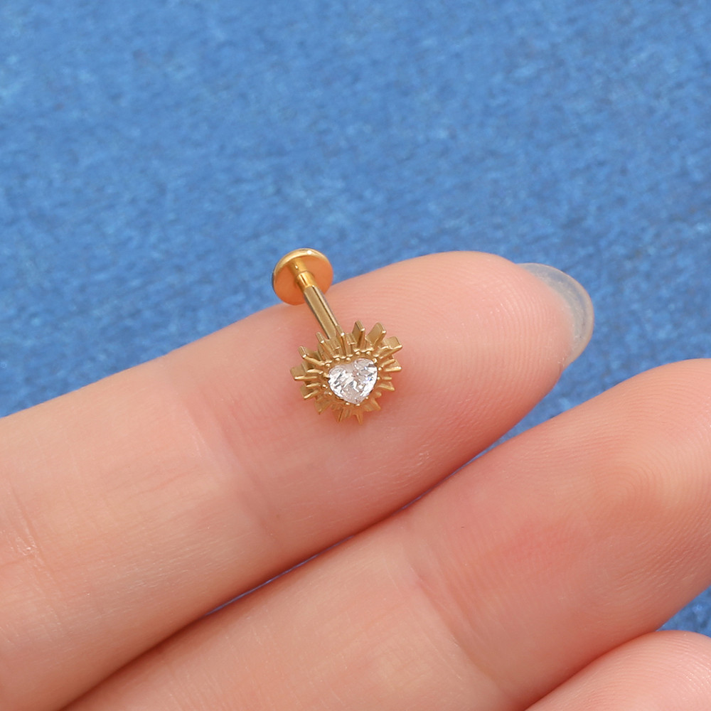 【Lomiss】Piercing Trágus Labret Titânio Coração Com Detalhes Zircônia Cravejada