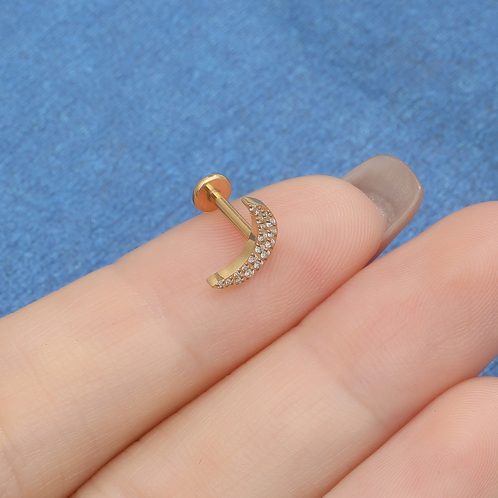 【LOMISS】Piercing Trágus Orelha Labret Titânio PVD com Lua e Zircônia 《Lomiss semijoias》