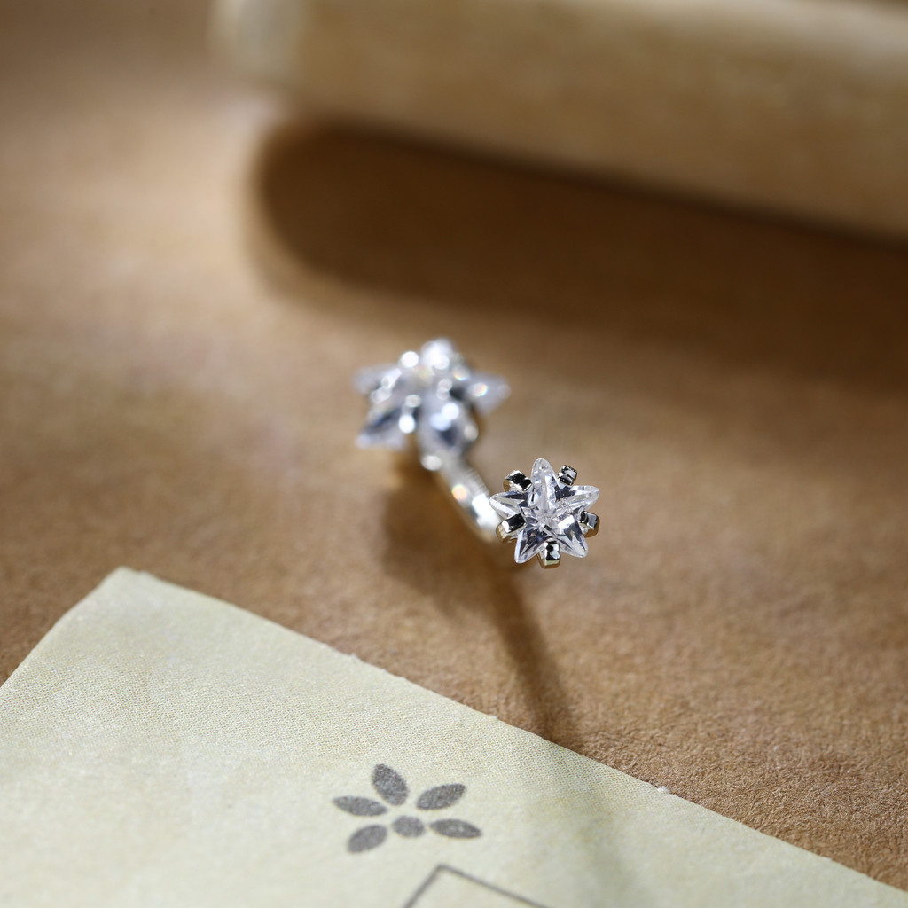 LOMISS Piercing Umbigo Prata 925 Estrela 2 Pedras Zircônia Cravejada Banana