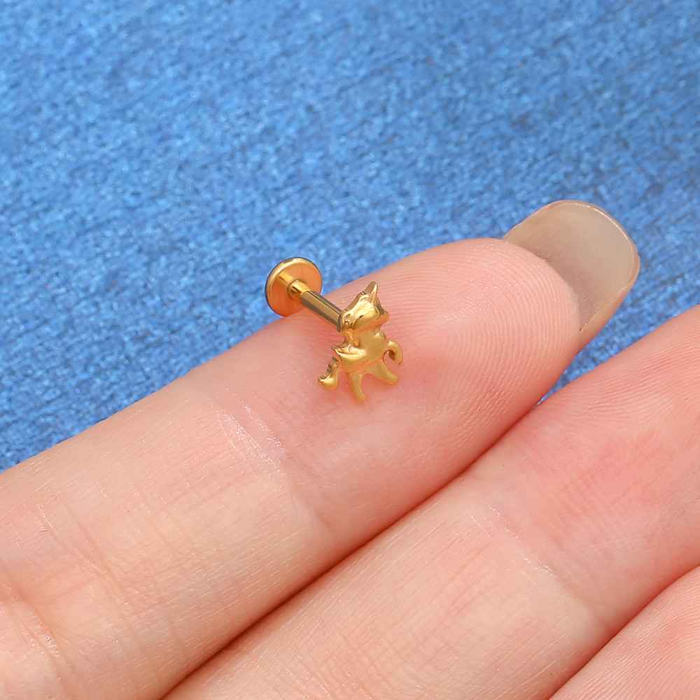 【LOMISS】Unicórnio Piercing Labret Titânio Pvd Dourado Tragus, Brinco