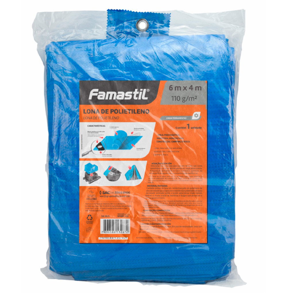 Lona de Polietileno 6x4M Impermeável com Cantos Reforçados Famastil