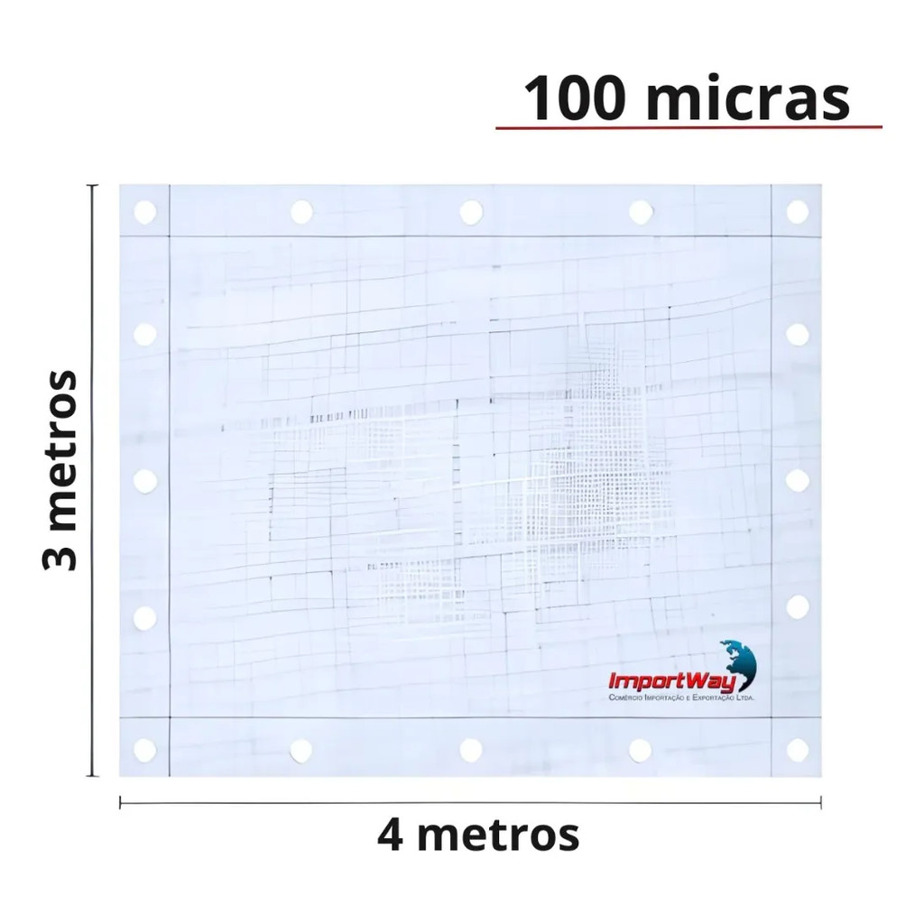 Lona Carreteiro 100 Micras Leve 5x4 - 20 Metros Branca – Impermeável com Ilhós Descrição do Produto A Lona Carreteiro 100 Micras Leve 5x4 Metros Branca é ideal para quem busca praticidade e proteção em diversas situações do dia a dia. Fabricada em polietileno, oferece resistência contra sol e chuva, sendo perfeita para coberturas temporárias e uso geral. Versátil e fácil de manusear, pode ser utilizada em caçambas, barcos, piscinas, acampamentos, praia, feiras livres, pesca, agricultura, armazéns, construção civil e indústria. Principais Características: Produto impermeável Resistente ao sol e à chuva Possui ilhós nos 4 lados, espaçados a cada 1 metro Fio sintético reforçado ao redor da bainha Conta com aditivo de proteção contra raios UV Lona leve, prática para transporte e instalação Dados Técnicos: Material: Polietileno Medidas: 5 metros x 4 metros Cor: Branca Gramatura: 70 g/m² Espessura: 100 micras Informações Adicionais: Marca: IMPORTWAY Referência: IWLP54BR Garantia: 3 meses Garantia do vendedor: 90 dias * Imagens meramente ilustrativas.*