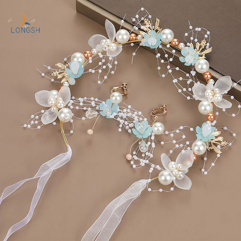 [LongSH] Cocar De Cabelo De Pérola De Noiva , Guirlanda De Flores , Joias Argola , Novo