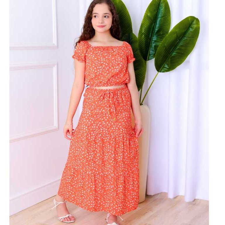 Look Infantil Feminino Verão – Conjunto Estampado com Blusa e Saia longa, Conforto e estilo, primavera* é bom?
