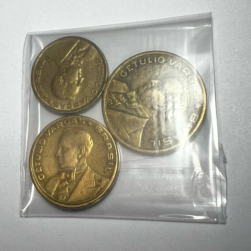 Lote 3 Moedas 10 20 e 50 Centavos Getúlio Vargas Bronze Alumínio