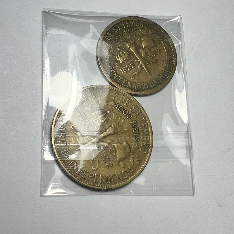 Lote de 2 Moedas 500 e 1000 Réis 1922 Independência Bronze