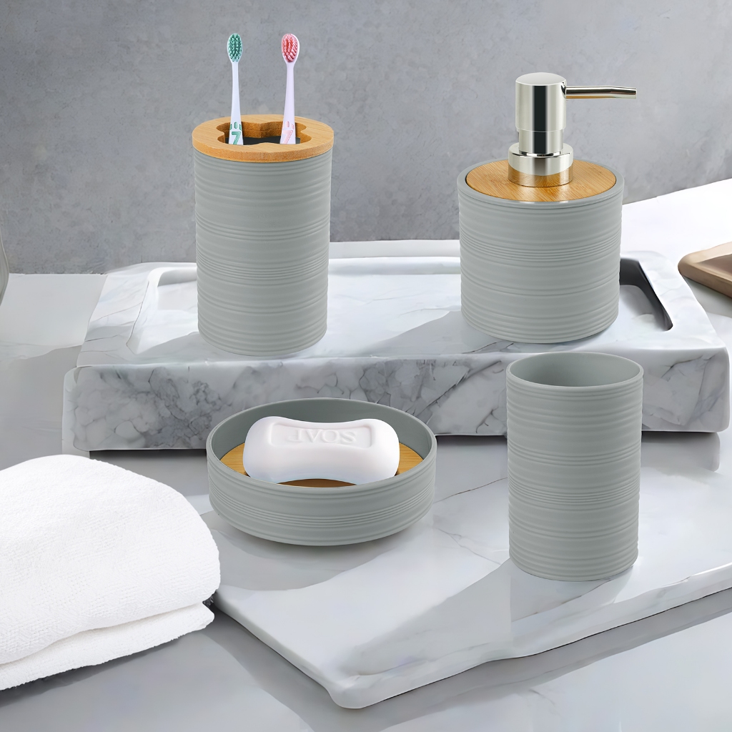 Louis Kit 4 Peças De Banheiro Porta Sabonete Líquido/Saboneteira/Porta Escova Cinza